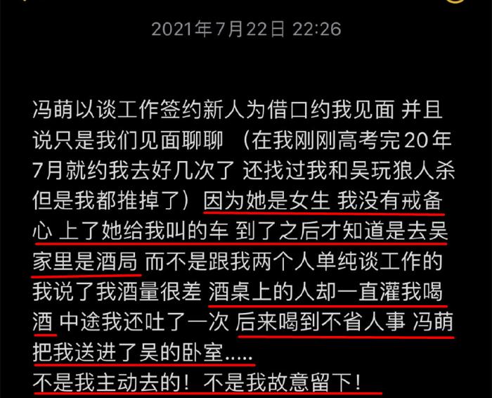 因为被灌酒喝到不省人事,被冯萌送进吴的卧室,不是主动去的也不是故意留下的!