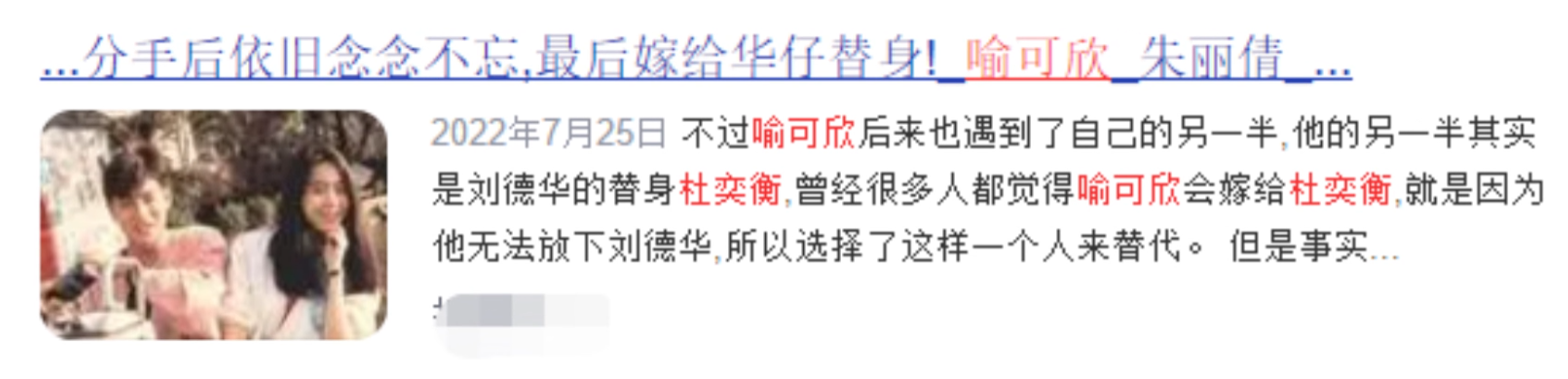 之后更是传出喻可欣对刘德华爱而不得后,将视线转移到了刘德华的御用替身杜奕衡身上,和他谈起了恋爱。