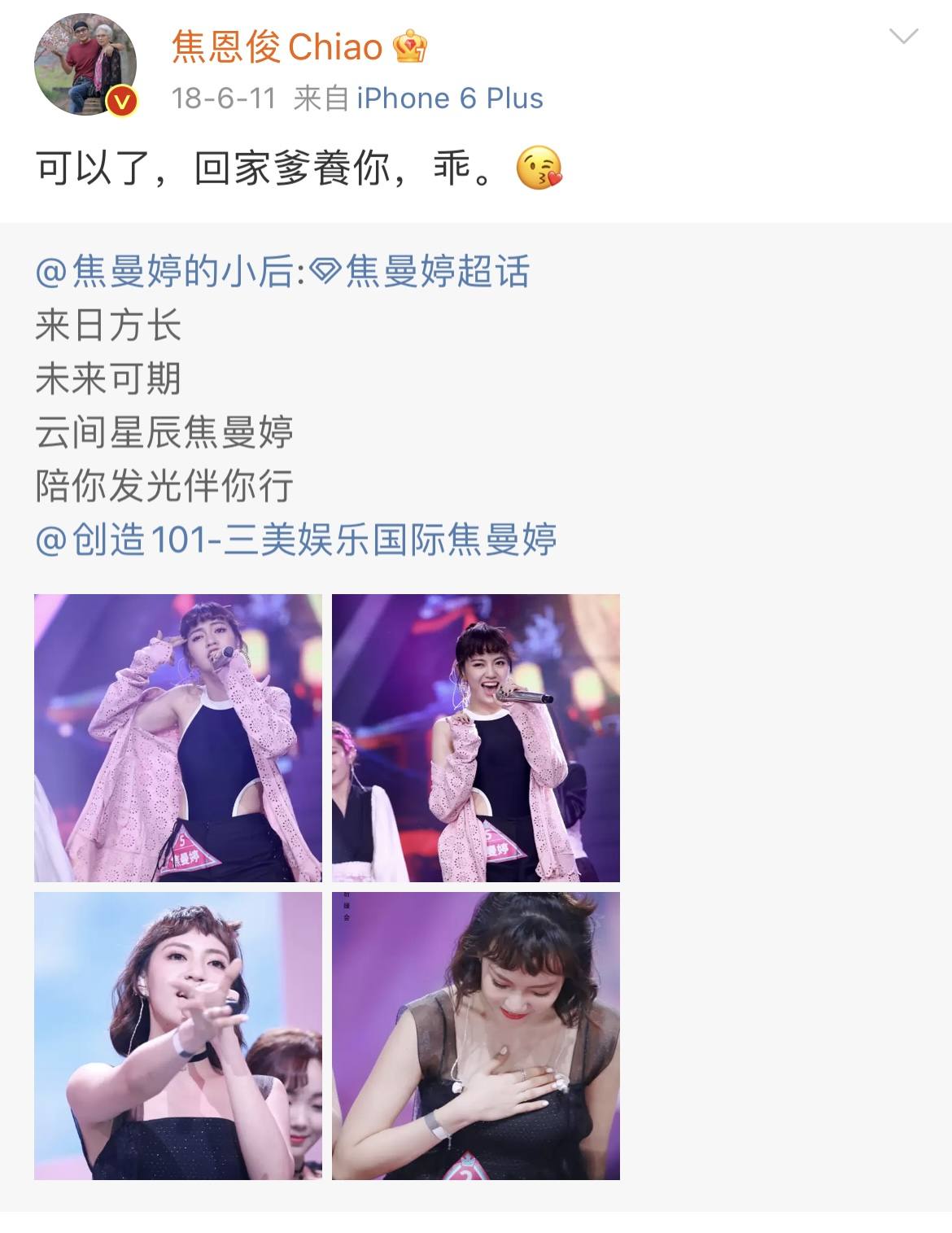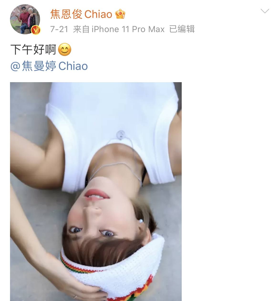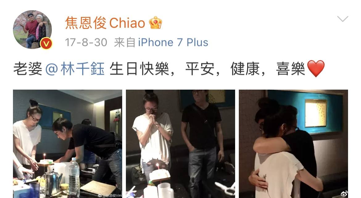 焦恩俊还是像小男生一样,会在社交平台秀恩爱,祝福老婆生日快乐。