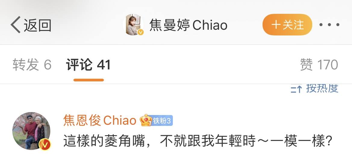 而且细看焦曼婷的眉眼,还是很像父亲焦恩俊...年轻时侯的。