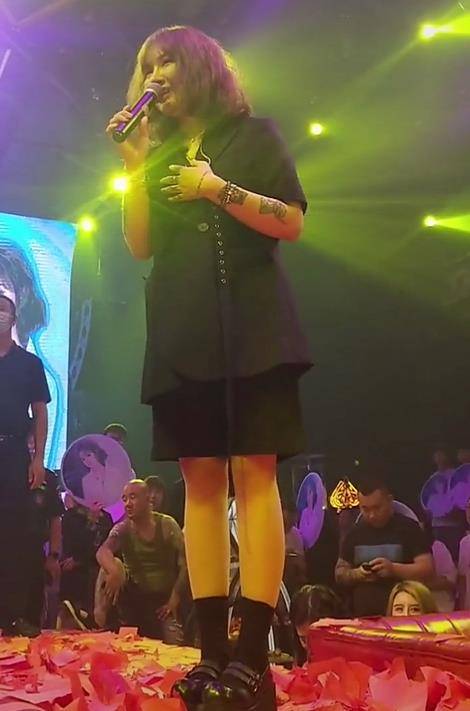 上面都是直播美颜的效果,其实她真实容颜底子也不差的。有人拍到她酒吧演唱的视频,是这样的: