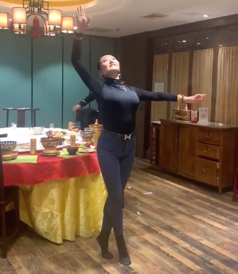 此外,黄格选在唱歌的时候身边还有美女伴舞,画面中美女早已摆好“天鹅”姿势。