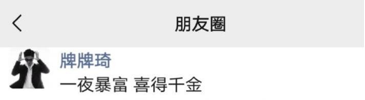 两人分别发文庆祝,牌牌琦表示:“一夜暴富,喜得千金。”