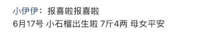 小伊伊也兴奋地称:“报喜啦,报喜啦,6月17号,小石榴出生啦,7斤四两,母女平安。”语气中满满都是初为人父母的自豪感和激动之情。