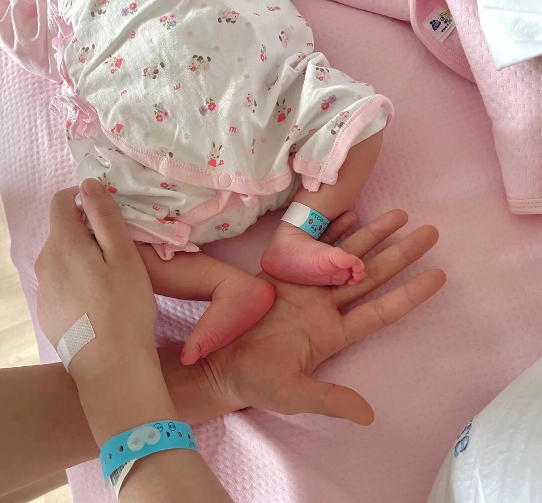 他们还炫耀般晒出了两张“小石榴”的照片。只见刚刚出生的她,浑身都粉嫩嫩的,眼睛也还没有睁开,小小的手指和脚丫子,像一只小青蛙一样缩在一起,懵懵懂懂地样子看起来非常可爱。