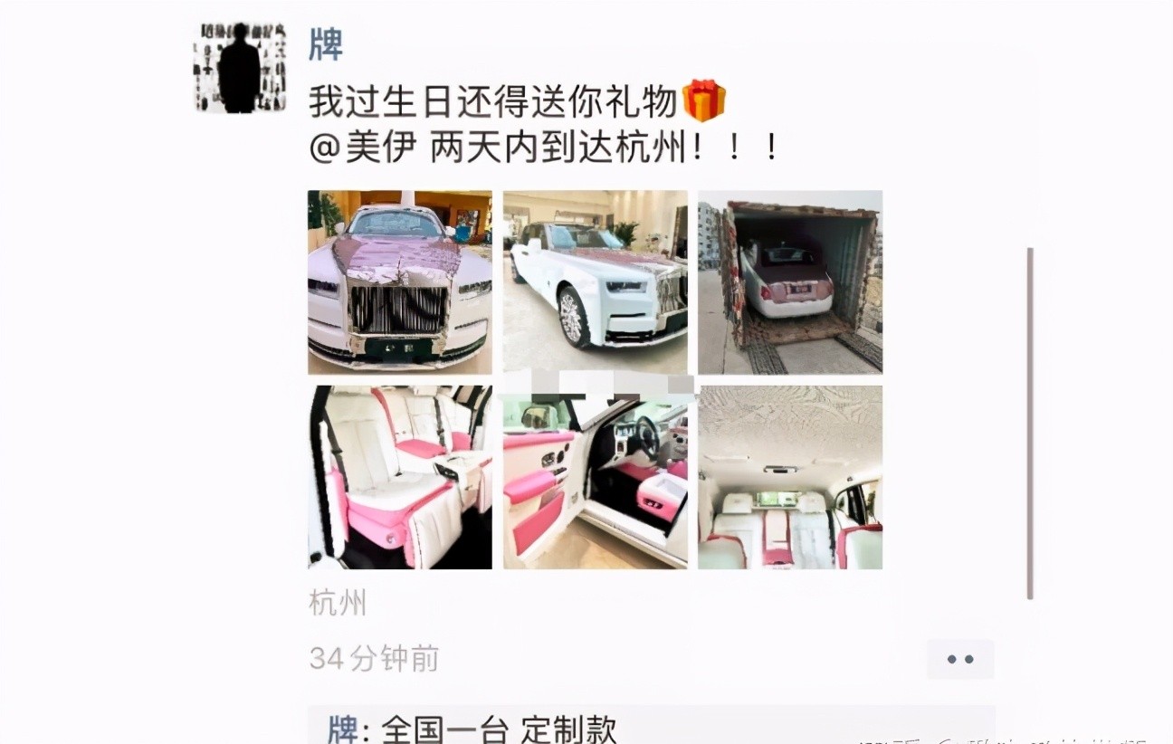 小伊伊就曾在直播中说过,牌牌琦的身家已经达到10个亿,是真是假我们不得而知。但牌牌琦曾晒过一辆送给小伊伊的粉色定制款豪车,全国仅此一台。