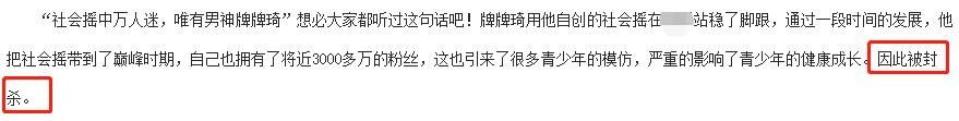 也因为牌牌琦的这些出格行为造成了不良的社会影响,在最巅峰时期他遭到短视频平台的封杀。