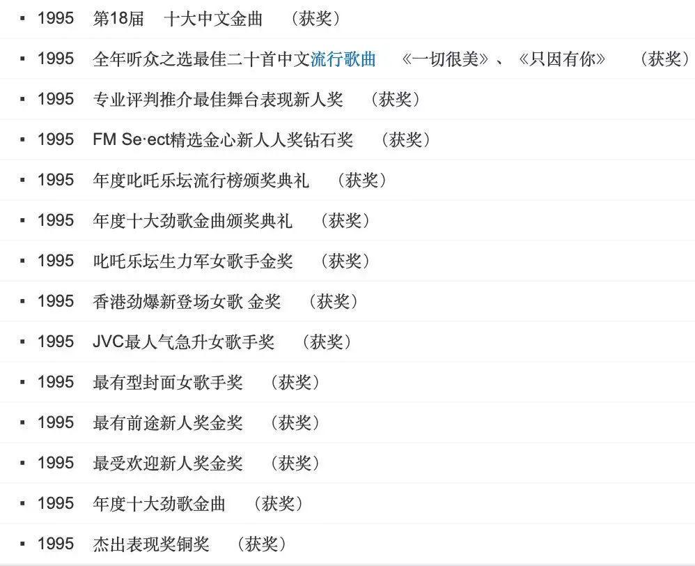 之后凭借《花花宇宙》、《不如跳舞》等的歌曲,被誉为 " 香港乐坛最后一位天后 ",大大小小的奖项拿了个遍。