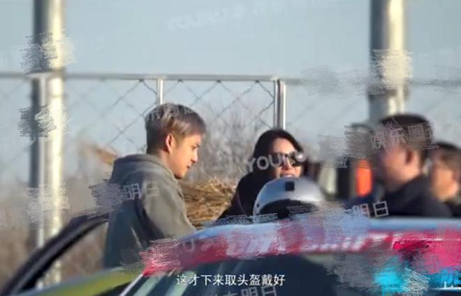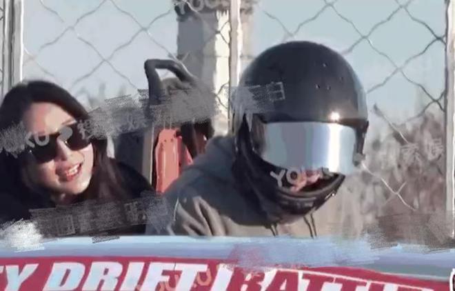 装备完毕后,韩东君进入赛车内准备在赛场玩漂移,美女并未坐在副驾驶中,而是跟在他身后贴耳对韩东君说了一句 " 慢点开宝贝儿 "。