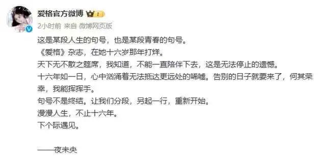 不少网友情不自禁泪目,感慨原来自己的青春真的已经渐行渐远。试问回到十年前,谁还能说不出几句 " 如果巴黎不快乐,不如回到我身边 "。知名写手白槿湖、安东尼等人也发文告别," 爱格待我,是十二年全力的承托 "、" 我最意气风发的那几年,是爱格给的 "……