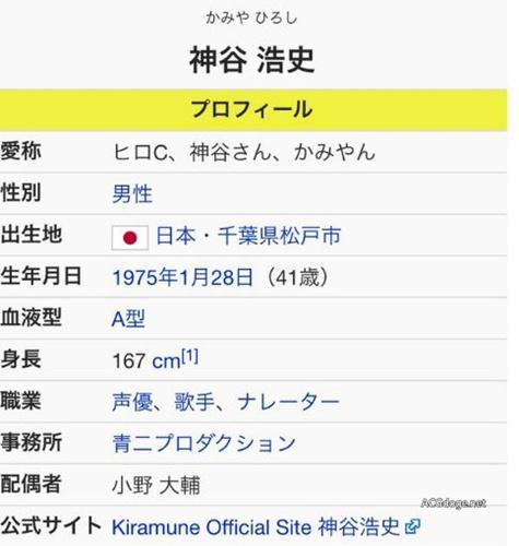 神谷浩史的维基百科页面短暂的被写成配偶者:小野大辅