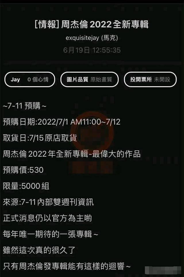 据悉,周杰伦的新专辑将于 7 月 15 日正式发布,此前,疑似新专辑曲目名单泄露,周杰伦则回应称请以公司官宣为准。