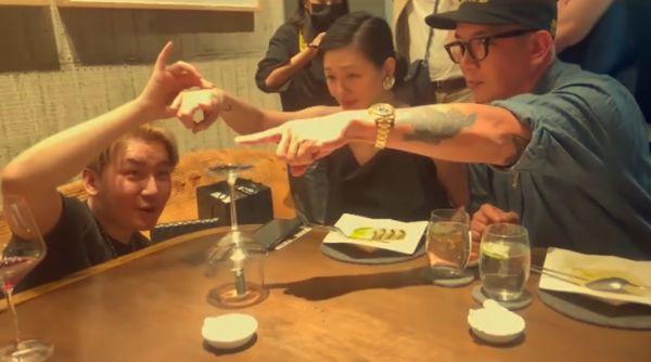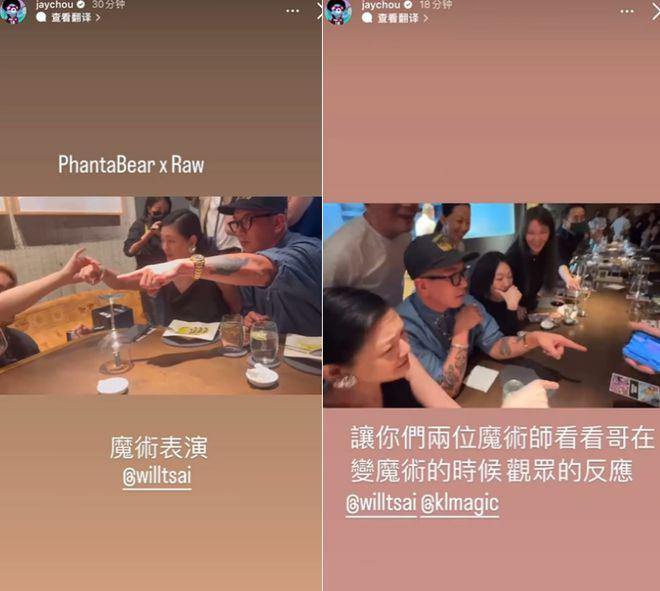 当天除了大小 S 姐妹一家之外,昆凌和林俊杰等一众艺人现身酒桌上也格外的活跃和健谈,每个人都是一脸笑容,大家一起喝酒聊天、玩魔术,十分热闹。