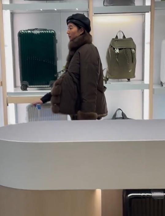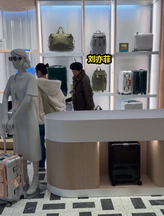 之后另一位偶遇者直接晒出了刘亦菲在商场内购买行李箱的画面。