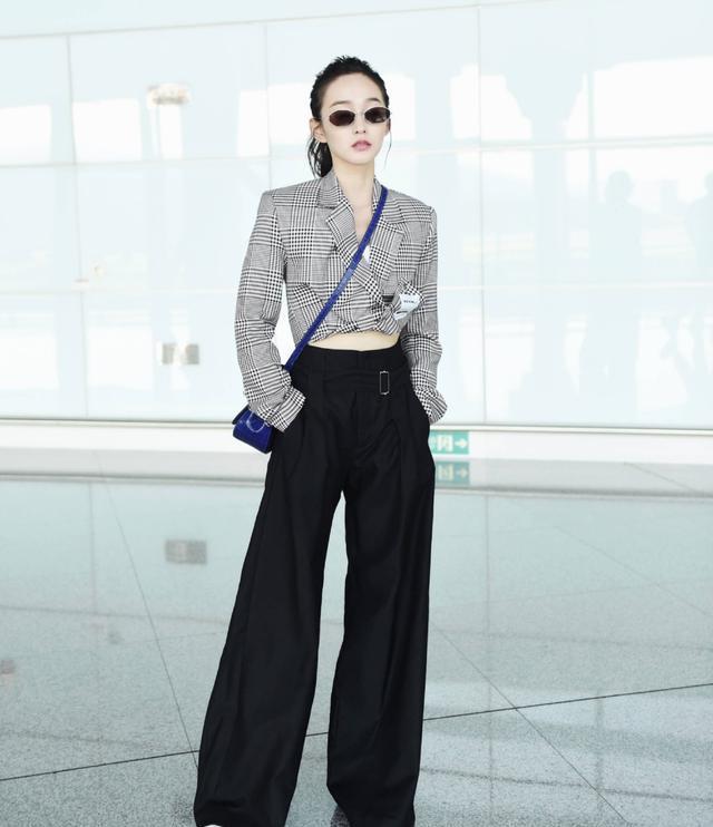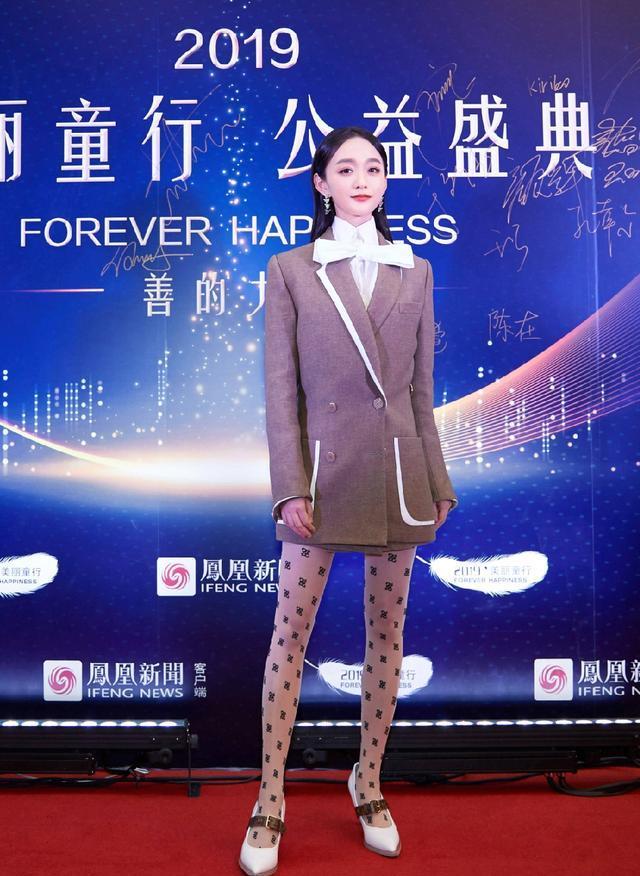 何泓姗穿搭好减龄,西装配丝袜美得高级,果然有颜任性