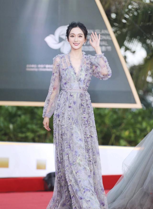 何泓姗以一袭紫色碎花裙亮相电影节,精致的鱼骨辫搭配珍珠耳环,清新甜美满满的少女感。淡紫色是最适合少女的颜色,还十分的高级显气质。