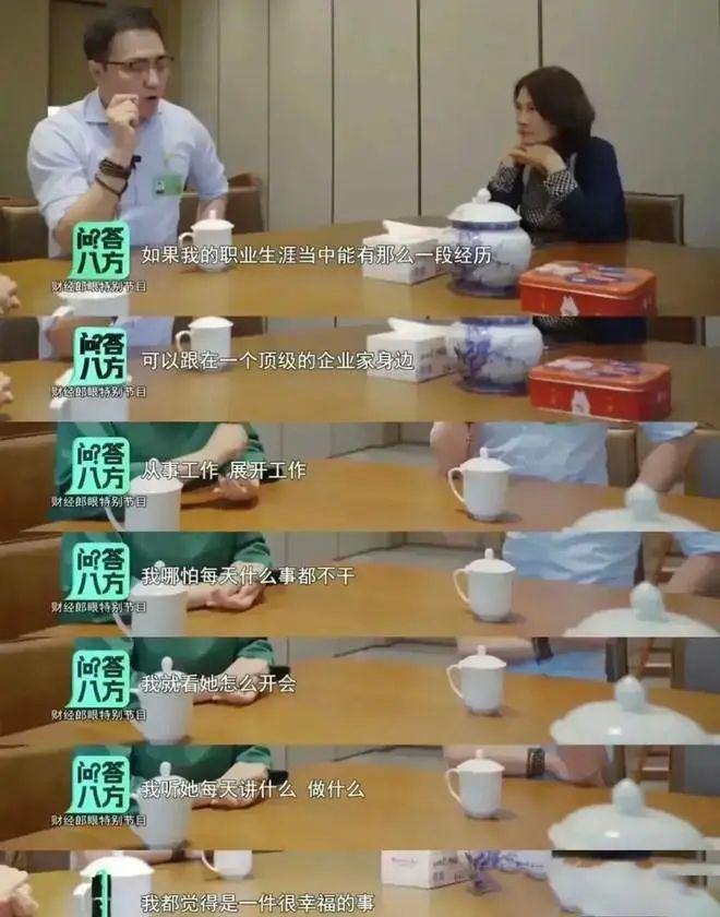 王自如在最新的采访中,两人回应恋情绯闻,王自如说在自己的职业生涯中能有那么一段经历,可以跟在一个顶级的企业家身边从事工作,哪怕每天什么事都不干,就看着她怎么开会,每天讲什么、做什么,都觉得是一件很幸福的事。
