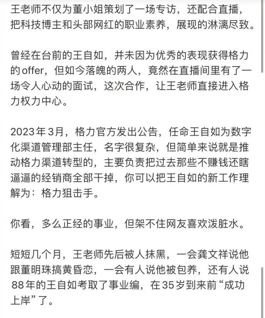本以为这只是一个简单的商业合作,但无奈后面疑似有圈内人爆料说王自如和董明珠有绯闻。