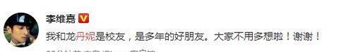 就这样,传闻愈演愈烈。事后李维嘉公开辟谣称,和龙丹妮就是校友,没有男女关系,希望大家不要过度揣测。