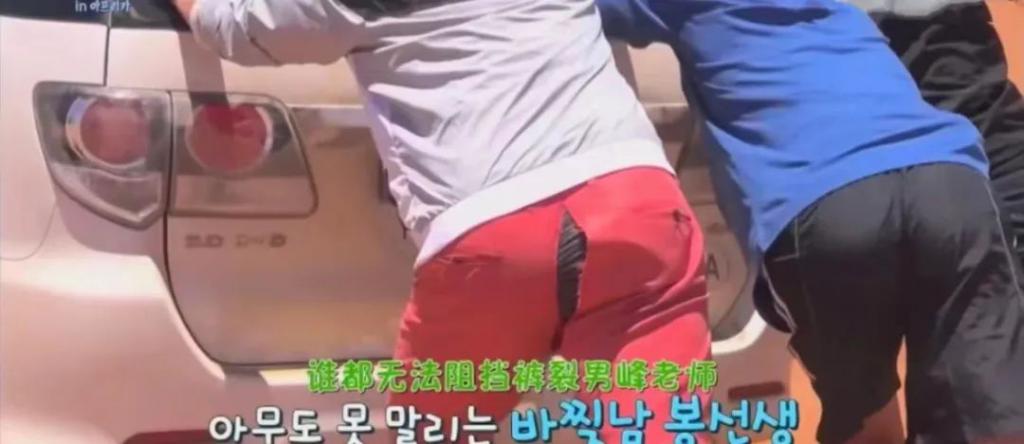 且有一半的行程中,他都穿着一条裂开档的粉红短裤。