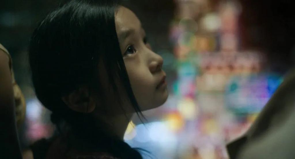 ▲小时候的子圆刚到香港乘坐玻璃电梯,繁华的城市让她觉得新奇又陌生,《但愿人长久》剧照