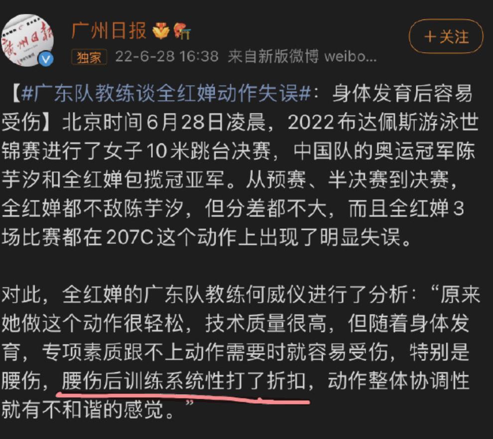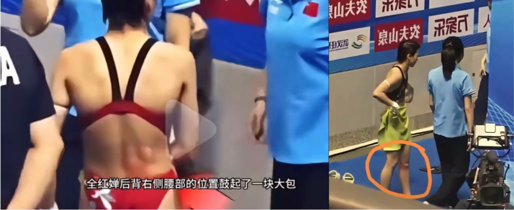 2025 年的布达佩斯游泳世锦赛上,全红婵就因为腰伤出现了动作失误,后来还被人发现腰间、膝盖上有凸起的疙瘩。
