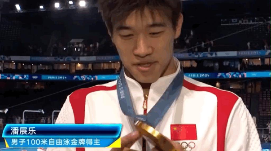 潘展乐拿到金牌的第一时间,不是小心翼翼地保管起来,而是不停地用手掰它,因为他不知道从哪儿听了个假消息,说金牌能拆成四份,于是差点掰坏了刚到手的金牌。