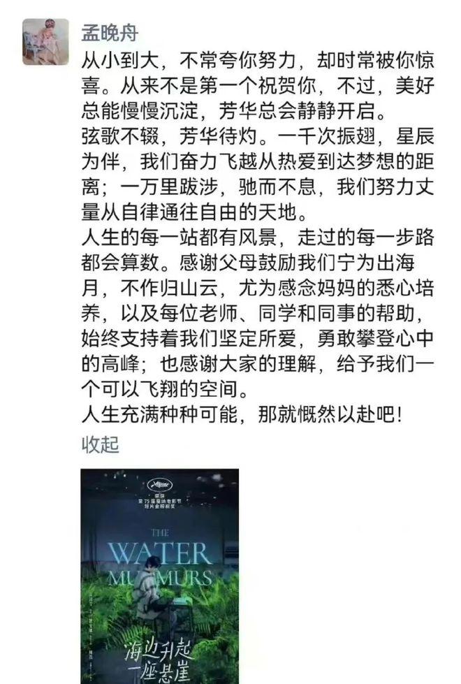 相比之下,当妹妹小成就时,孟晚舟以对仗工整、文辞优美的文字在朋友圈为妹妹道贺,尽显大姐的爱与文采。