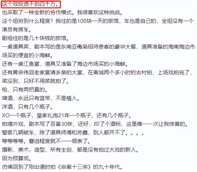 住宿费、道具费抓襟见肘,摄影、美术、造型、主创都是没拍过大戏的人,演员的演出费更是能低就低、能省就省。