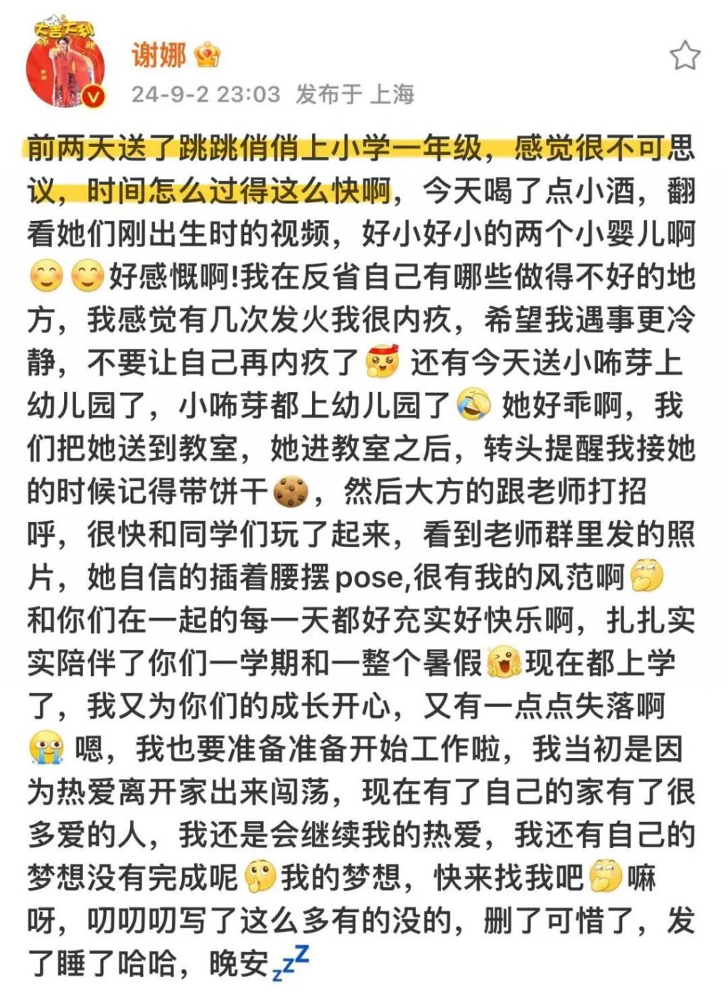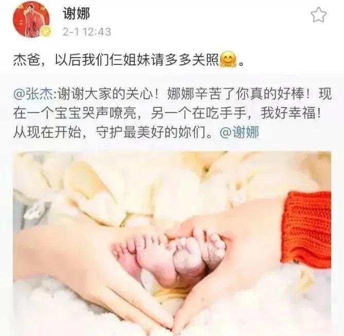 之后又过了两年,2025 年年初,谢娜在社交平台上分享了自己二胎的消息。