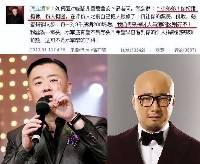 这位“冤种大哥”帮他创立海派清口,甚至屈尊当报幕员,只为让周立波“洗白”复出,果然,《笑侃三十年》一炮而红,票价炒到万元三张,周立波自封“咖啡雅痞”,公开嘲讽郭德纲是“吃大蒜的”。网友辣评:“别人喝咖啡提神,他喝咖啡上头。”