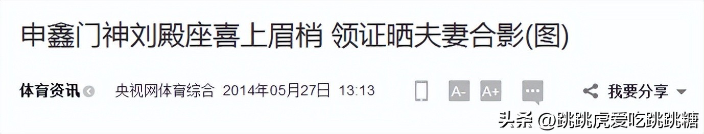 央视网体育综合2014年5月27日---申鑫门神刘殿座喜上眉梢 领证晒夫妻合影(图)