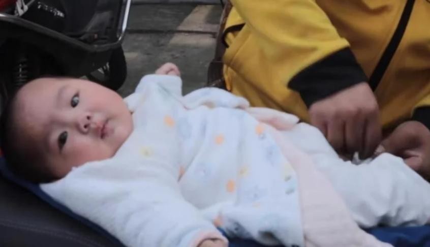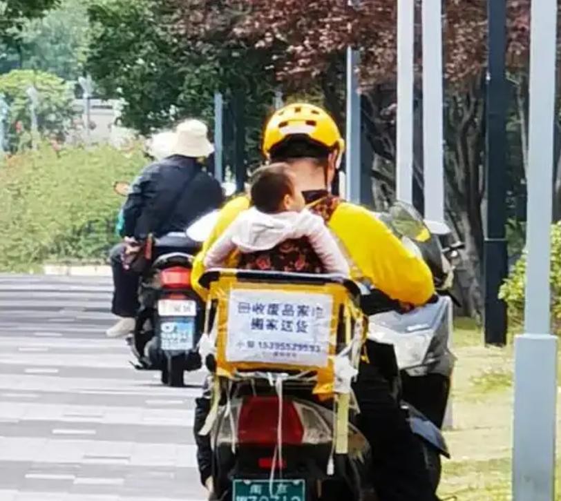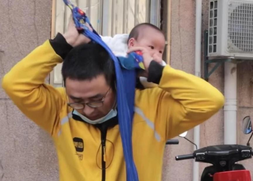 一个 6 个月大的婴儿,本应在温暖的家中被悉心照料,却跟着父亲穿梭在高楼林立的城市里,里送外卖,有时候熟睡头部向后仰,路人看到都觉得很危险。