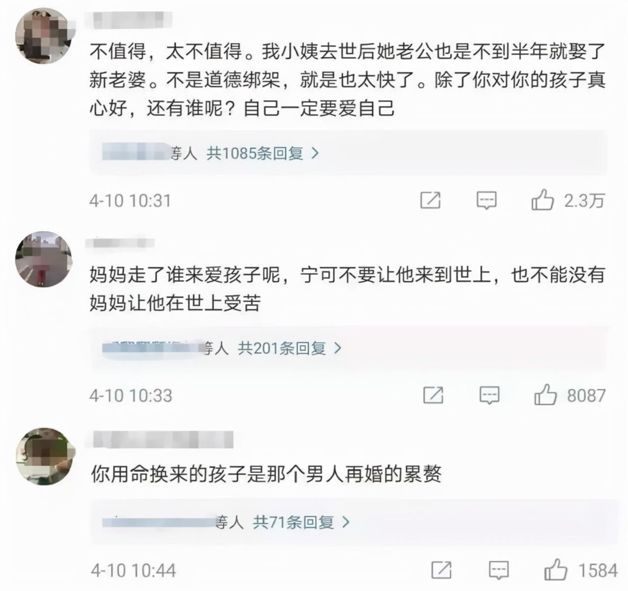而有的网友则为张丽君感到不值,舍命为丈夫生下个儿子。