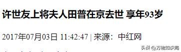 中红网——许世友上将夫人田普在京去世 享年93岁 2017-07-03
