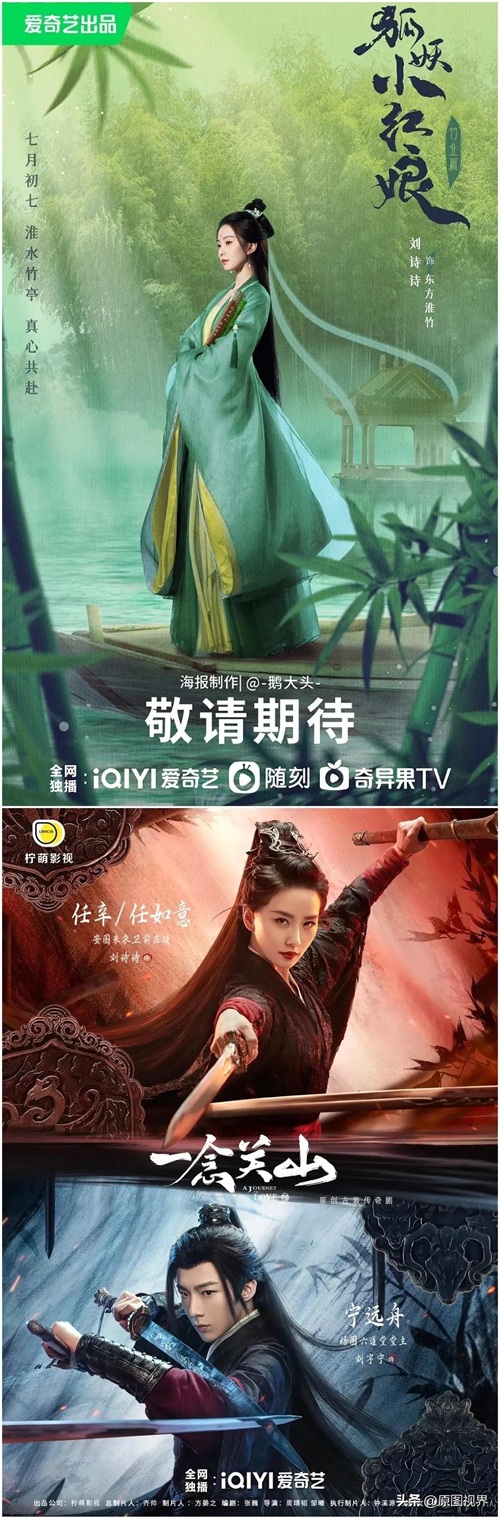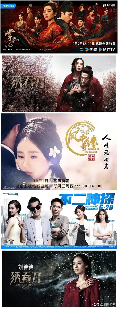 刘诗诗部分影视综艺作品:《掌心》、《倚天屠龙记》、《流金岁月》、《轩辕剑之天之痕》、《步步惊心》、《心理罪之城市之光》、《绣春刀》、《步步惊情》、《仙剑奇侠传三》、《伤心童话》、《聊斋奇女子》、《如果可以这样爱》、《1921》、《女医明妃传》、《醉玲珑》、《白蛇后传》、《深夜前的五分钟》、《不二神探》、《狐妖小红娘·月红篇》、《一念关山》、《那年青春我们正好》、《精忠岳飞》、《亲爱的自己》、《风中奇缘》、《射雕英雄传》、《淮水竹亭》……