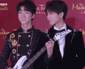 易烊千玺看到蜡像也有几秒破功,一直在憋笑。看到自己蜡像长这样,还要保持微笑,确实有亿点点困难。
