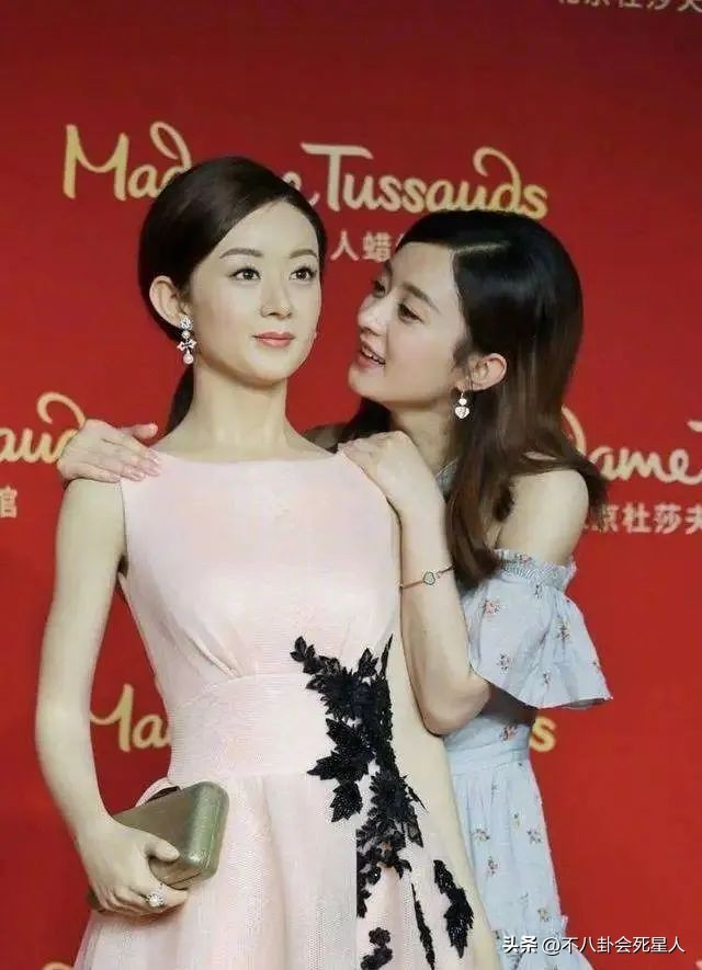 虽然蜡像的五官很像,但是放在脸上就很奇怪。两人站在一起,会让人觉得蜡像是赵丽颖姐姐,而不是她本人。