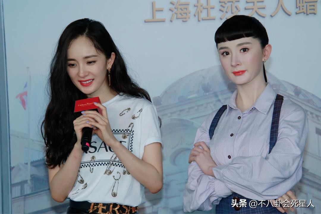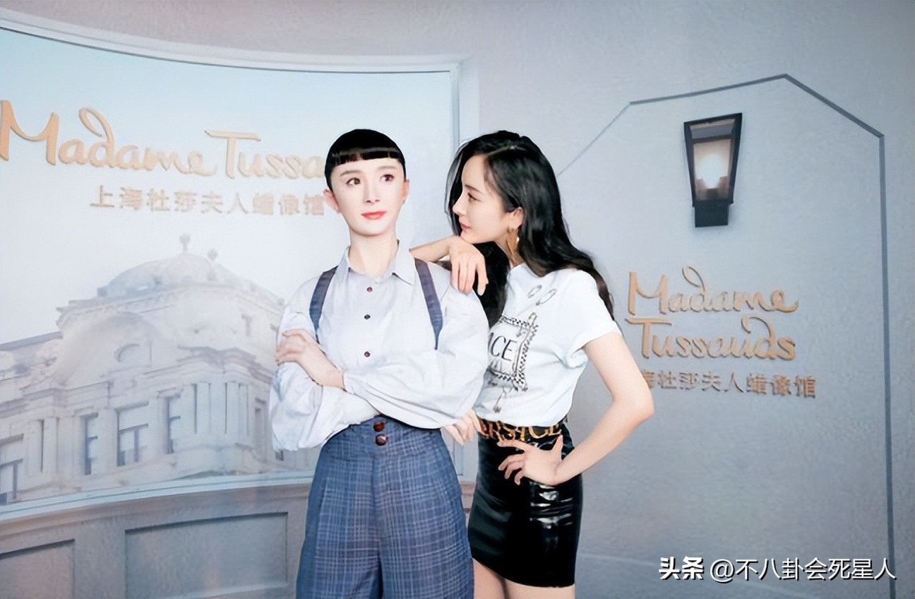 虽然蜡像再丑,但毕竟也是自己。互动拍照也是必不可少,杨幂和蜡像的同框打卡,对比简直惨烈。拍照姿势好看也借助了道具拍摄,但还是挡不住蜡像僵硬的脸庞。杨幂有多好看,蜡像就有多奇怪。