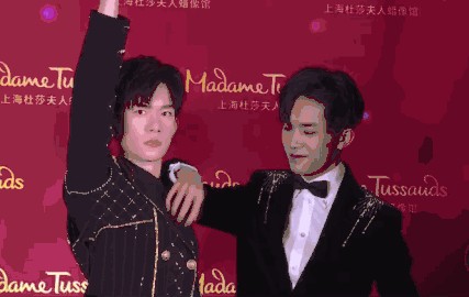 鹿晗还敢认吗?不敢认也要认,不仅认还要拉上眼前这位一起营业拍照。这位蜡像鹿晗怎么看怎么奇怪,脸小得像开了十级美颜,脸上没有气色,只剩下脸白。