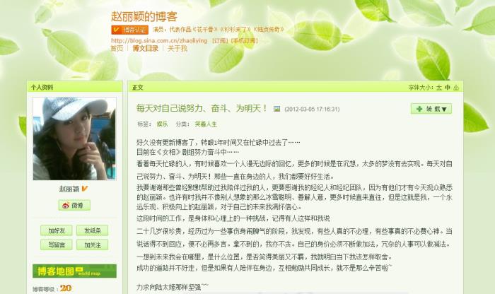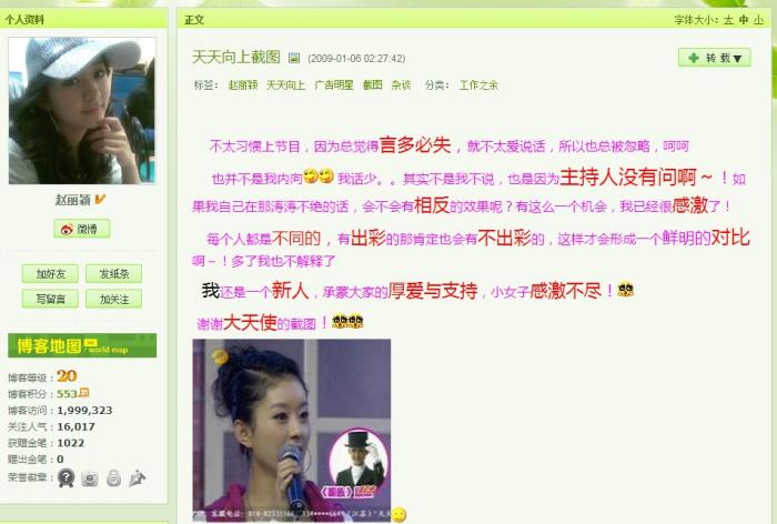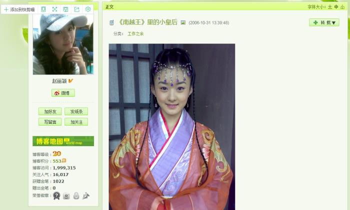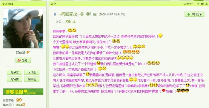 赵丽颖博客,赵丽颖2006年开通的博客写的很真实