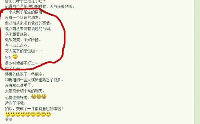 博客中丽颖会把自己日常拍戏定妆照和大家分享,还会写自己在外的感受,比如在拍摄《南越王》时,她给大家分享自己的心声:“一个人在陌生的横店,没有一个认识的朋友,做以前从来没有做过的事情,说以前从来说过的台词,战战兢兢,有一点点寄人篱下的感觉......”。