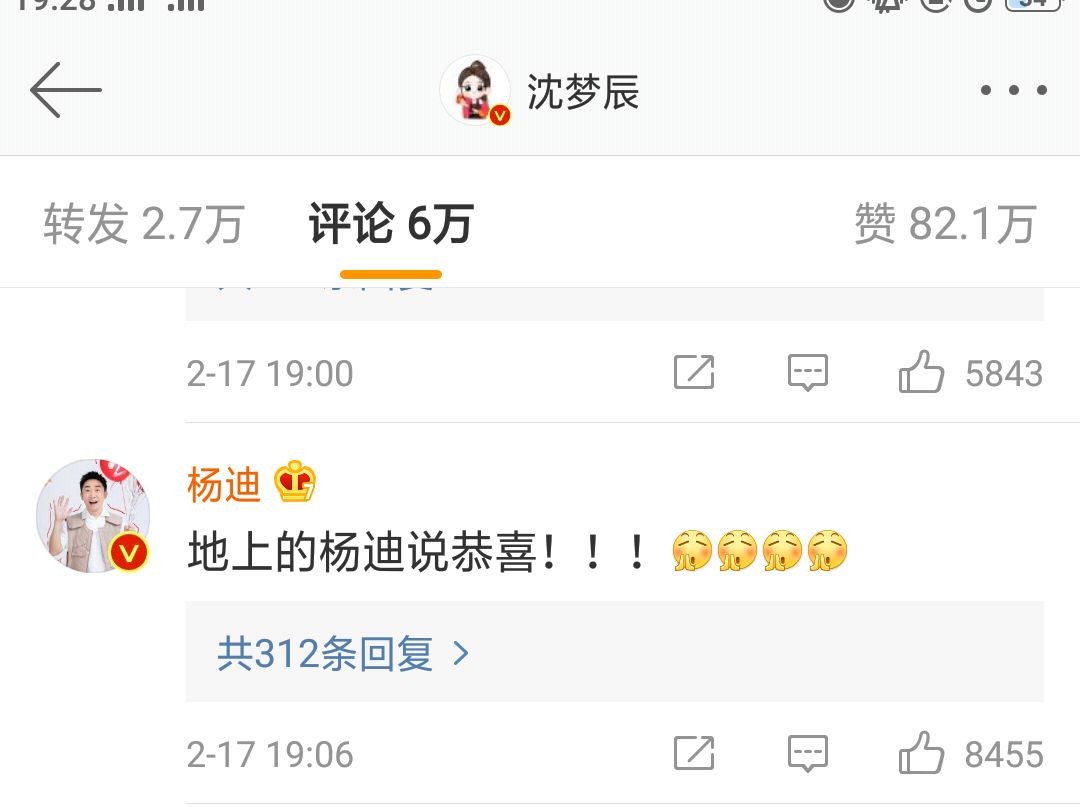 袁姗姗与王鸥也留言,杨迪更是有趣的留言,把自己说得很低调,称自己为地上的杨迪!