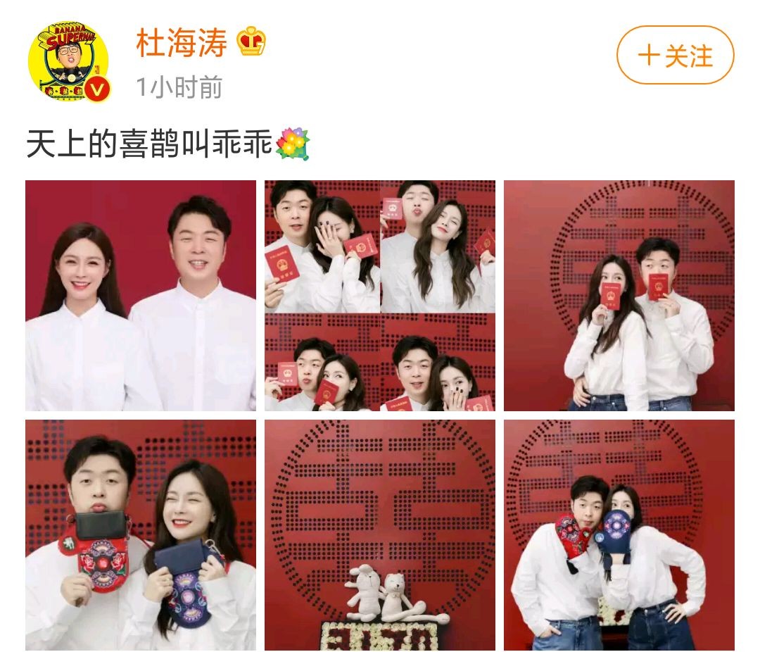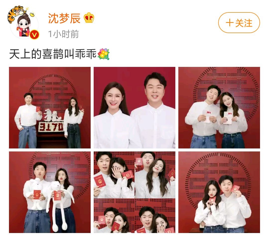 2月17日,杜海涛与沈梦辰在社交平台官宣结婚领证,同时晒出了各类结婚照和结婚证。