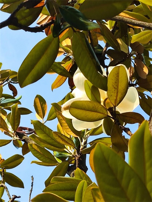 (注:荷花玉兰长在树的高处,且花朵朝上,手机拍摄有一定的难度,只勉强拍了几张图。)