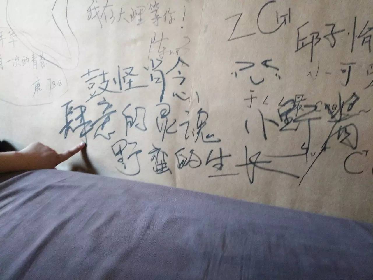 王二狗之所以叫王二狗因为觉得这样好养活,另外一层我猜是反差萌,一个看着灵气的女生叫狗的名字,很反差,有记忆点。王二狗把我们赶到小屋的树洞,这里一般只差原创,讲故事,不给录音录像拍照,都不行。进去小黑屋之后,整个墙面写着,我有一杯酒。看过大冰书的人都知道下一句是:可以慰风尘。