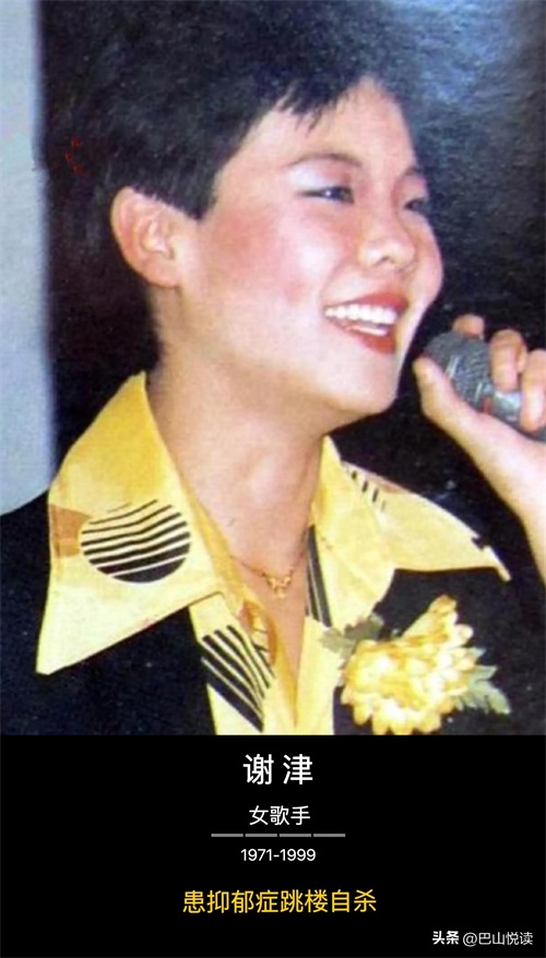 谢津因为人际关系处理不好而被唱片公司封杀,1999年2月14日早晨,她从天津23层高的寓所跳楼自杀。