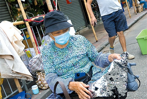 将一些未用过的手袋,送给了一位坐在路边的婆婆。