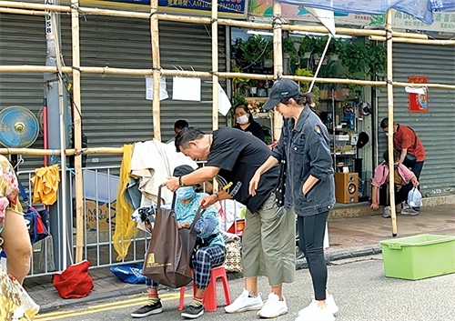 虽然贵为港姐季军,但唐丽球性格相当贴地。近日,《东周刊》就在深水埗鸭寮街发现他们牵手逛街,更顺便断舍离做善事。在捐赠物品前,他们先细数带出来的二手物,并拿出来分类,先将女儿的公仔及玩具,捐赠一个南亚裔人士,让他作二手买卖,之后将一些未用过的手袋,送给了一位坐在路边的婆婆。婆婆收到新手袋,开心不已,并立即拿出来慢慢欣赏,之后更爱不释手。