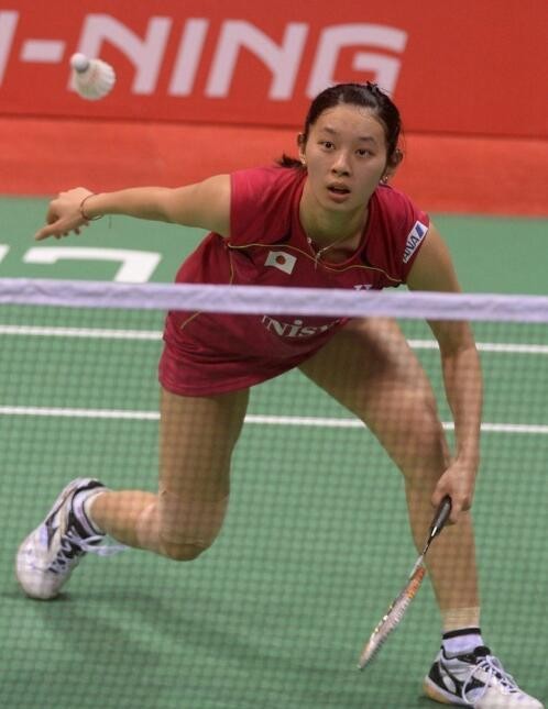 高桥沙也加,日本羽毛球运动员,左手握拍。